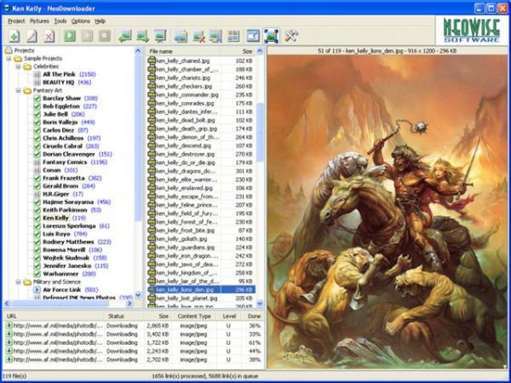 O NeoDownloader faz o trabalho duro de forma automática. Basta você indicar o endereço URL do site e definir no menu “Project Settings” o tamanho e tipo de conteúdo que quer baixar. É possível criar vários projetos e baixar imagens, vídeos e músicas de vários sites ao mesmo tempo.